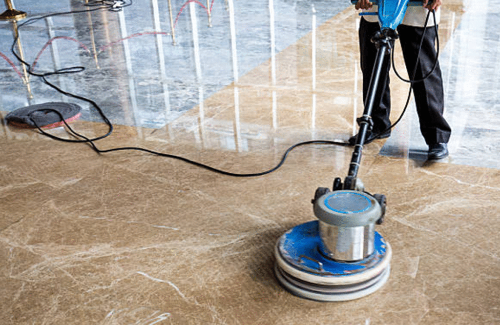 نقوم بتنظيف الرخام من أي غبار أو مخلفات ناتجة عن عملية الجلي.