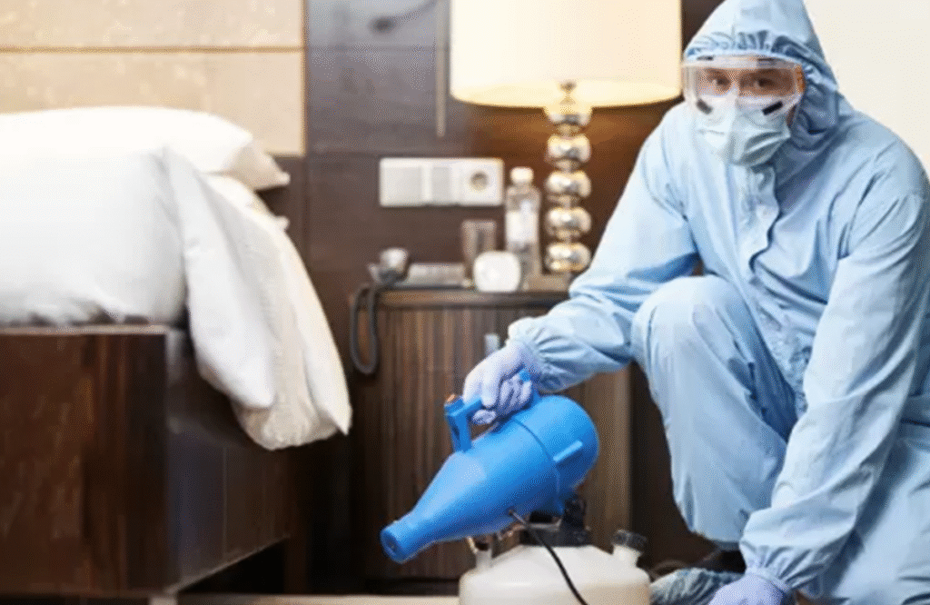 : البدء بتطبيق تقنية البخار (Heat Treatment) ذات الضغط العالي والحرارة الفائقة لقتل البق في كل مراحل نموه (بيض، يرقات، بالغات) داخل الأثاث والشقوق.